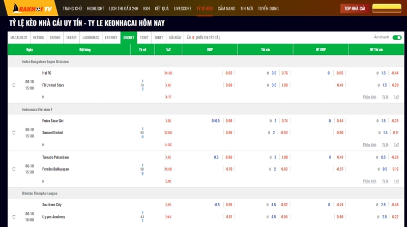 Mình ấn tượng nhất ở Ra Khơi TV chính là khả năng cập nhật ty le keo theo từng giây.